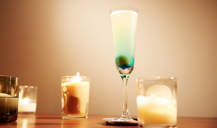 Lắc Choya Umeshu “Kishu” và nước ép bưởi và thêm curacao xanh. Thưởng thức sự tương phản giữa màu xanh và màu vàng cùng hương vị ngọt ngào và sảng khoái.
